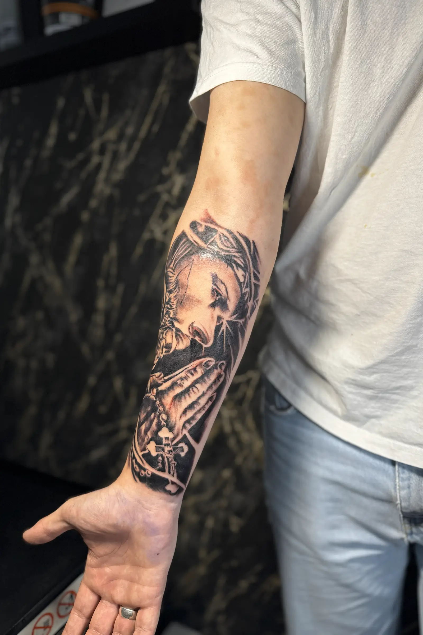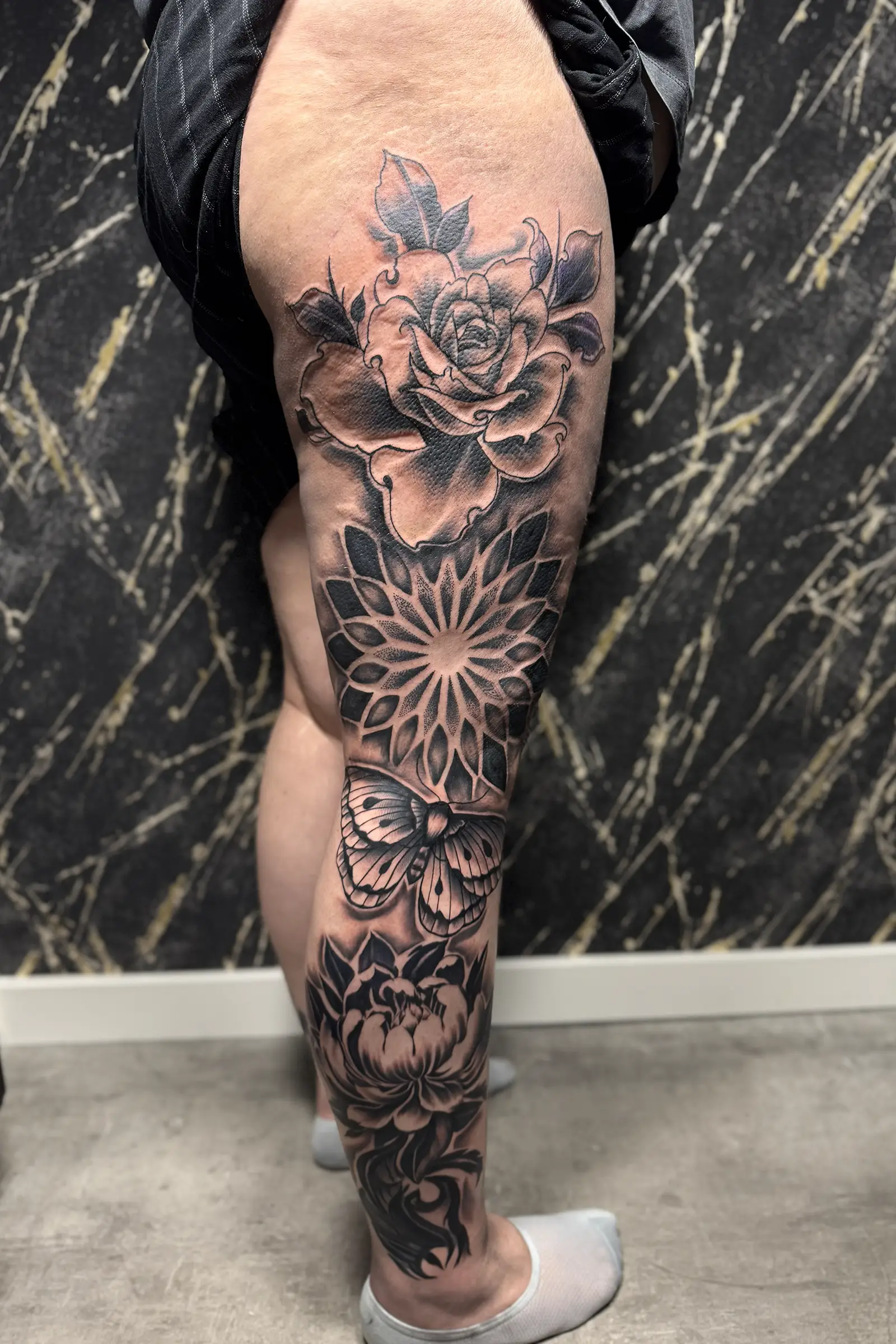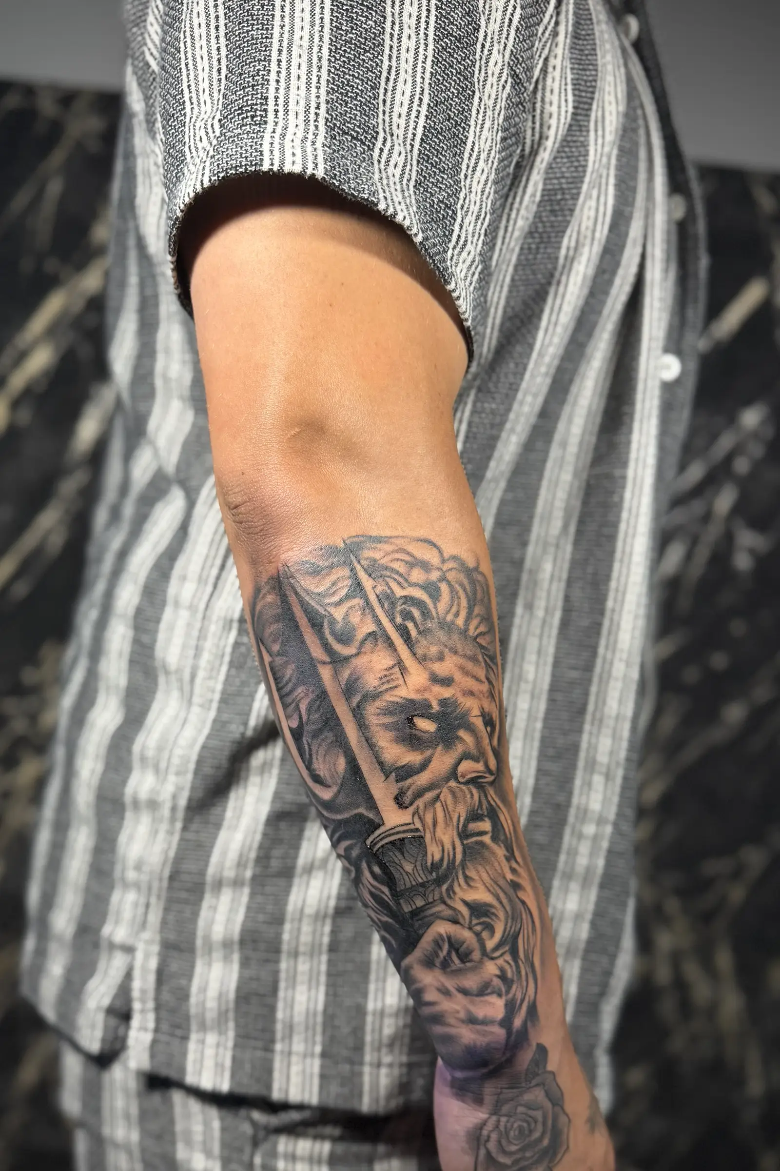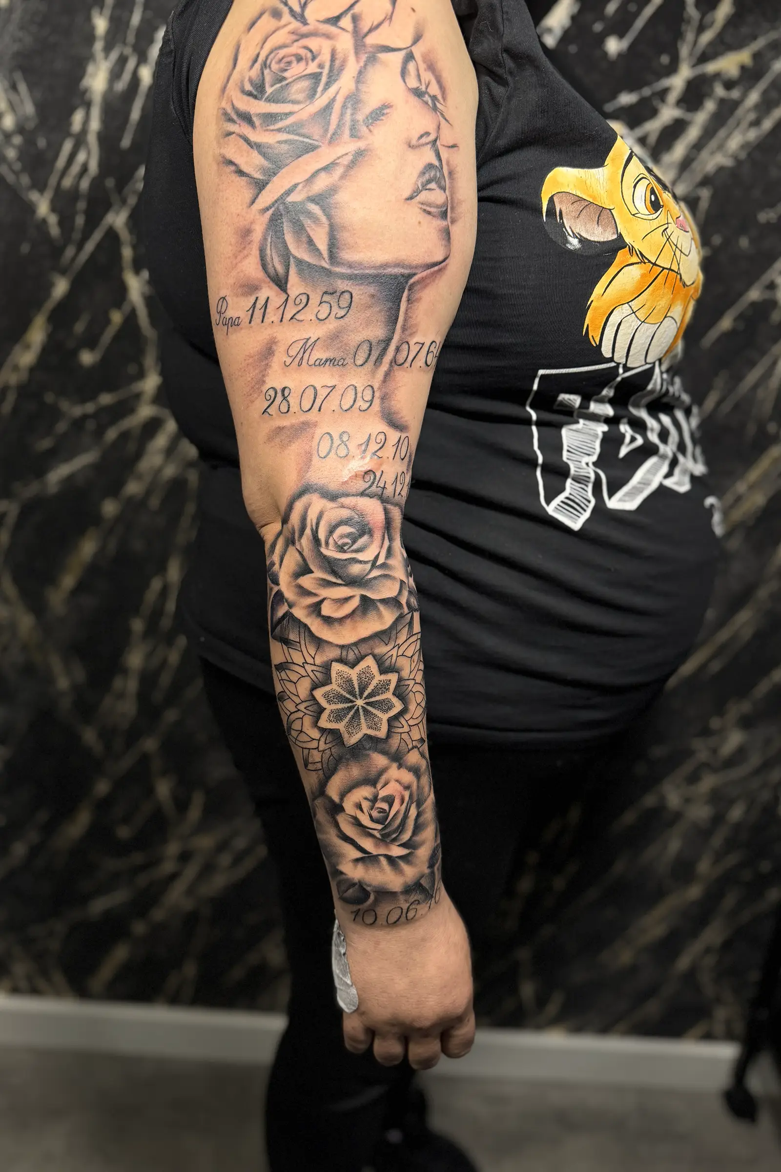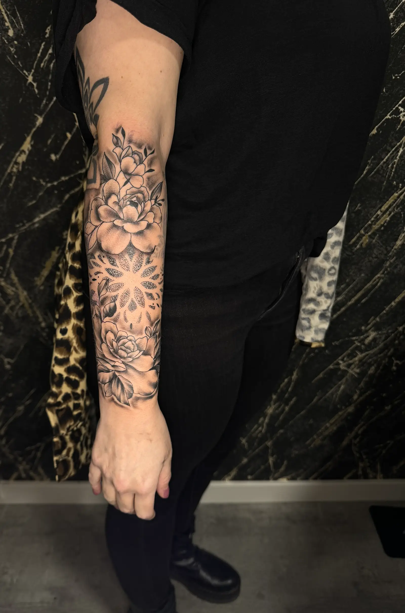 With over ten years of professional experience, I focus on black and grey realism, lettering, mandalas, dotwork, and cover ups. My goal is to translate your ideas into artwork that feels balanced, intentional, and built to last.